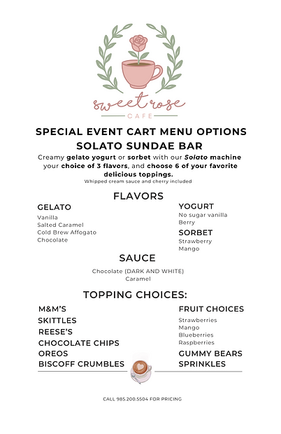 For information on scheduling an event, email sweetrosecafeevents@gmail.com or call 985-900-5504